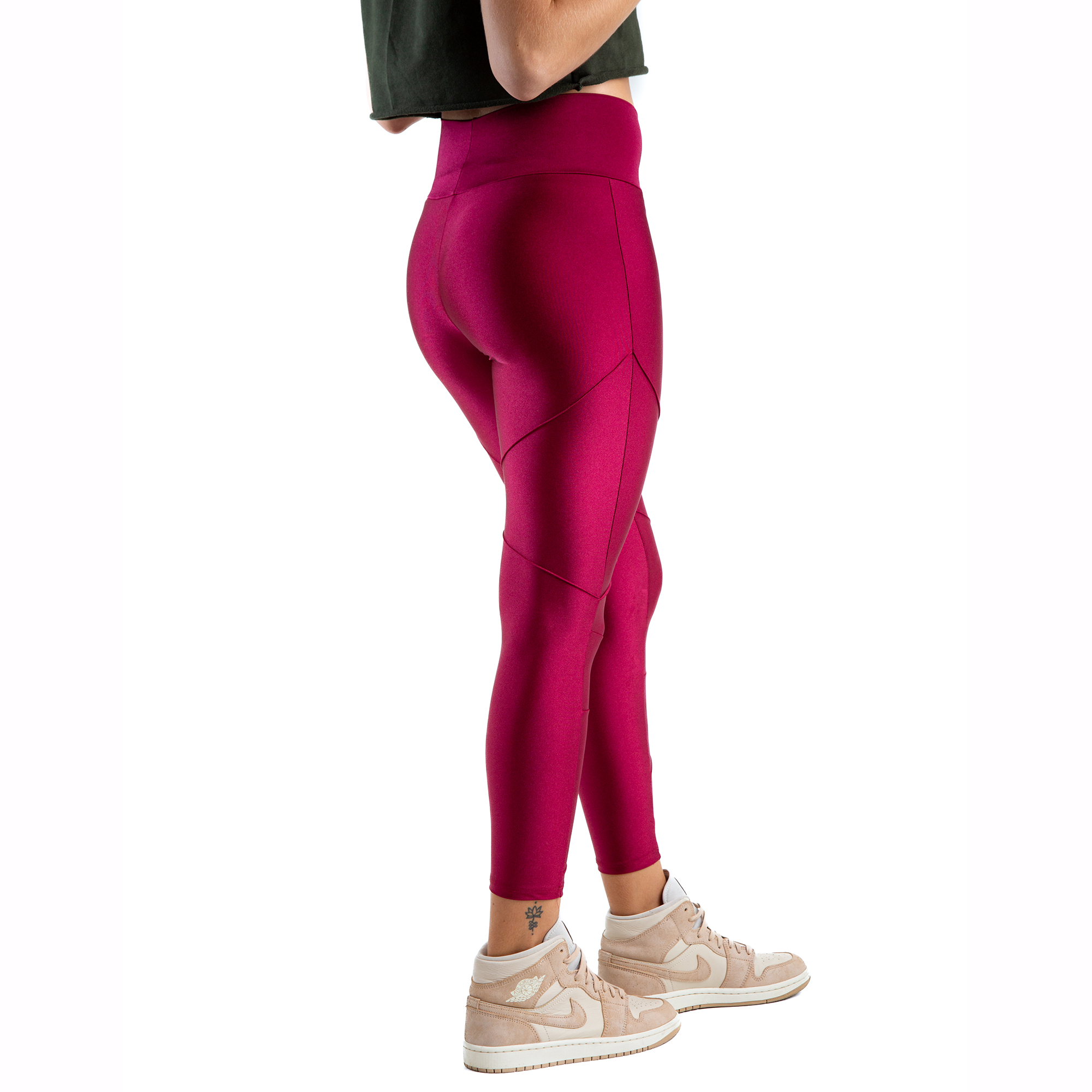Malla/Legging de Lycra importada de excelente calidad, color guinda con destellos y detalles de costuras. Largo hasta el tobillo, pretina ancha para mayor soporte. No trasluce. Un básico del guardarropas para combinar con un: polo, polera, casaca o sostén deportivo Kinetix.