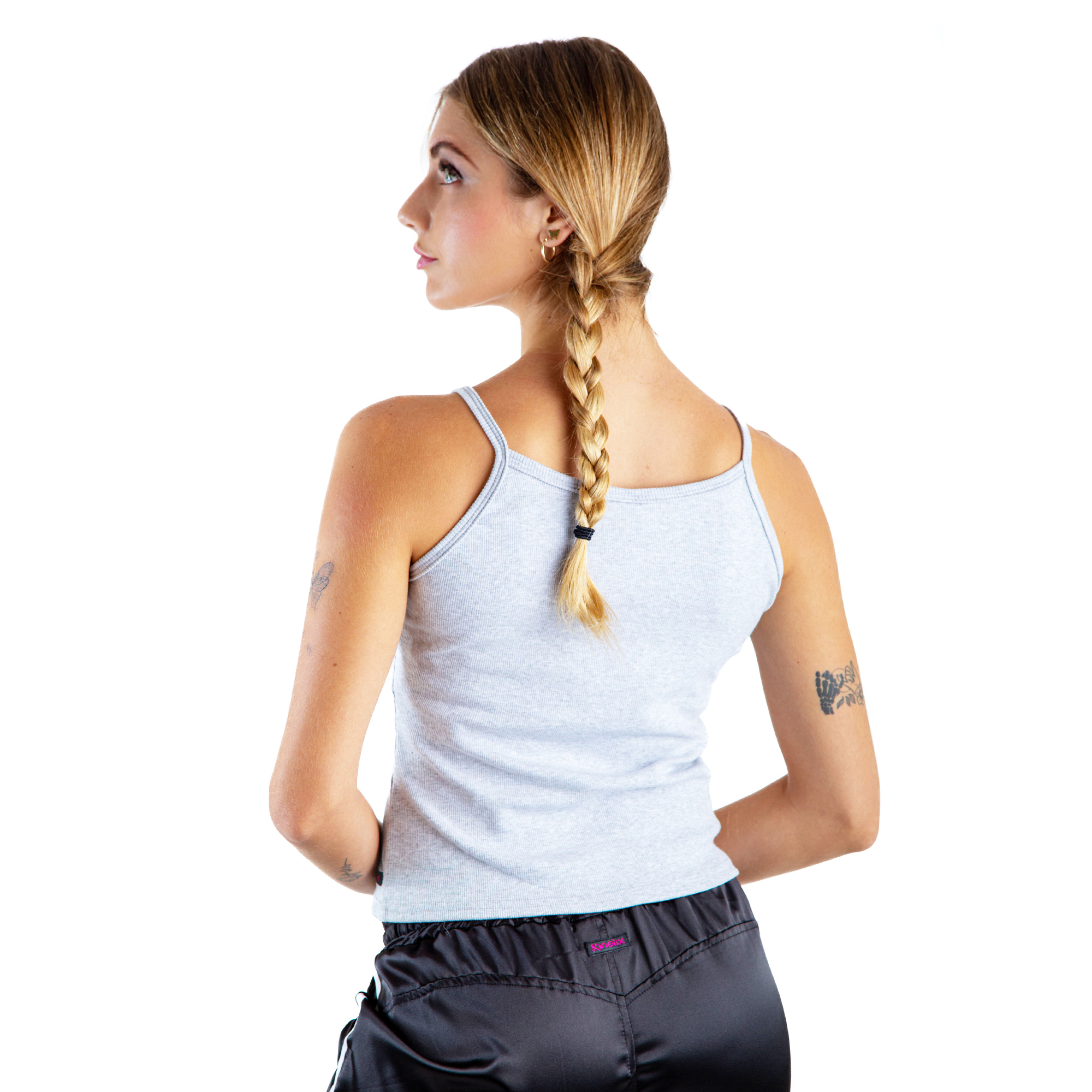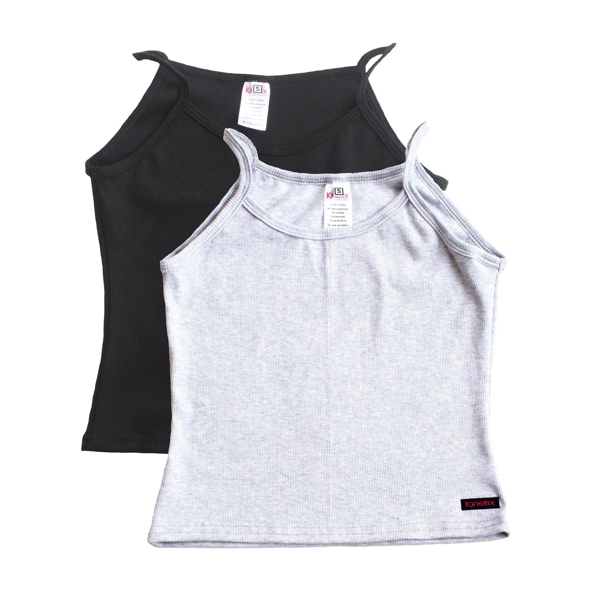 Pack de 2 tops deportivos/casuales de algodón con spandex, manga cero con tiras, frescos, suaves al tacto, entallados y cuello redondo. Colores básicos: melange, negro. Para tus entrenamientos, clases de danza o para diario.