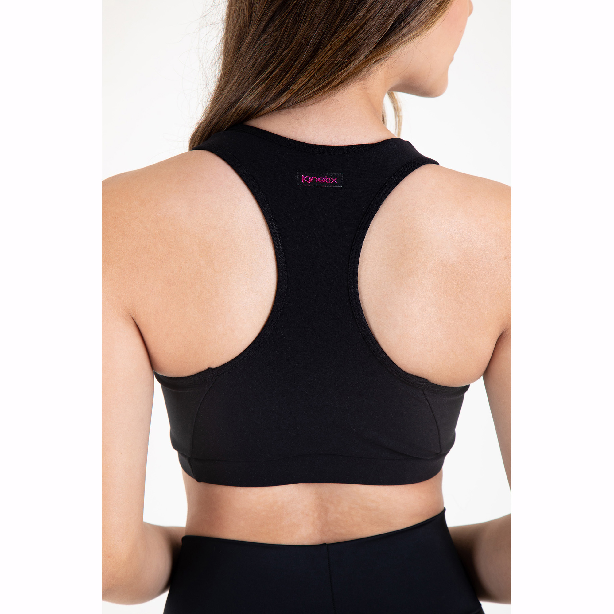 Top/sostén deportivo para entrenamientos de alto impacto, de material deportivo Supplex grueso color negro, con forro, elástico para mayor soporte, copas flexibles y costuras para mejor forma anatómica.